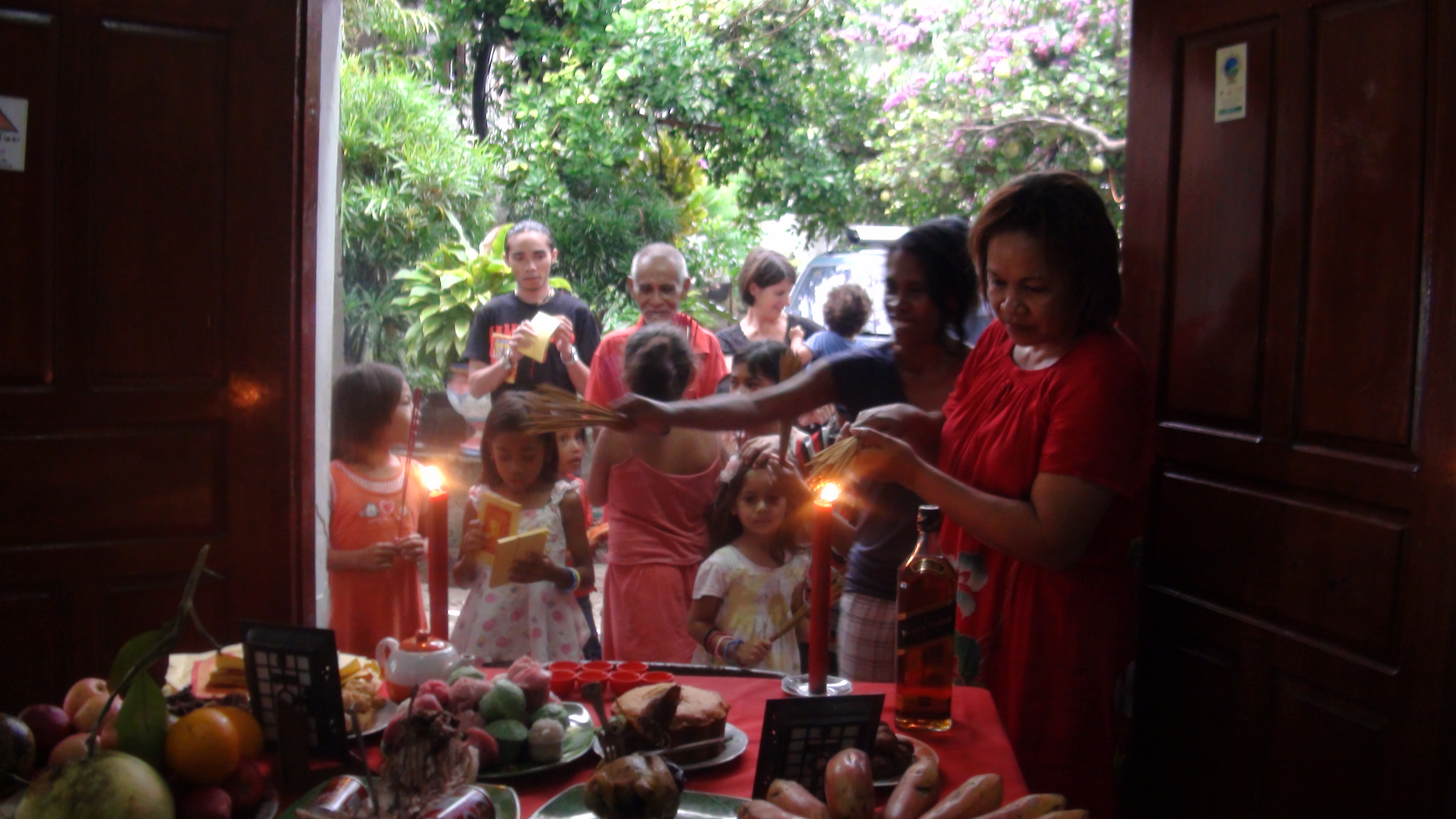 Tempu tinan foun, tuir tradisaun Xina Timor, sira halo “shambaya” iha uma. Rituál hana'i ho harohan sira halo dala haat. Ida ba maromak, ida ba bei’ala sira, ida ba rai-na’in ho ida ba tinan foun. Rituál ida ne’e fó agradese no harohan husu matak malirin ba família tomak bele isin-diak nafatin. _____________________ According to the traditions of the Chinese-Timorese community, at New Year a “Shambaya” ritual is performed at home. The ritual is performed four times to honour and pray to God, the ancestors, the spirits of the land and for the New Year. Those participating in the ritual give thanks and ask for blessings for good health for their family members.