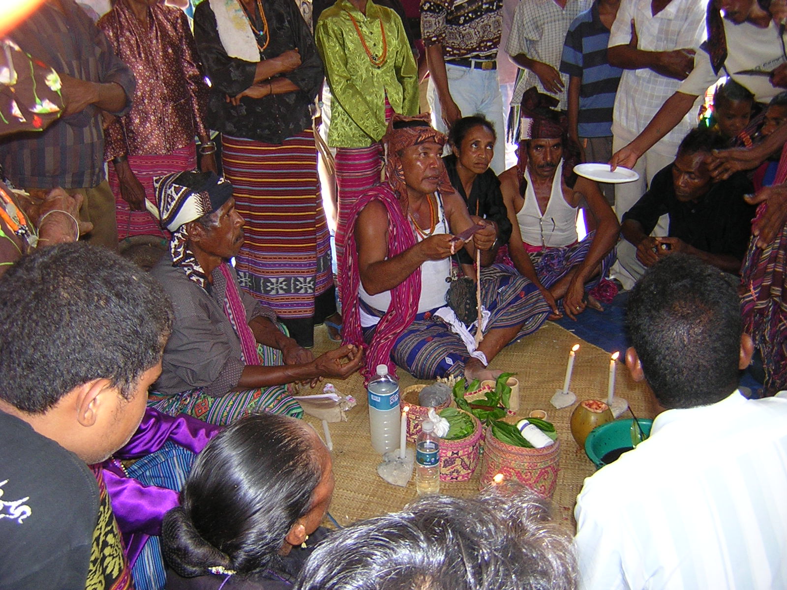Comissão de Acolhimento, Verdade e Reconciliação harii programa ida naran ‘Prosesu Rekonsiliasaun Komunidade’ (PRK). Objetivu PRK nian atu fasilita reintegrasaun iha komunidade ba ema ne’ebé durante periodu 1999 halo krime iha kontextu violénsia politika ne’ebé la'os grave. PRK prosesu ida ne’ebé bazeia ba mekanizmu rezolusaun konflitu lokál sira tuir lisan ida-idak nian. Foto sira ne’e mai husi prosesu rekonsiliasaun komunidade ida ne’ebé hala’o iha Bebonuk, Dili, iha tinan 2004. ______________________ Community Reconciliation Process The Commission for Reception, Truth and Reconciliation (CAVR) established a program called "Community Reconciliation Process" (PRK). The objective of the program was to facilitate the community reintegration of individuals who committed non-serious crimes in the context of the political violence of the 1999 period. The PRK process is based on local conflict resolution mechanisms according to the customs of individual communities. These photos show a community reconciliation process which took place in Bebonuk, Dili in 2004.