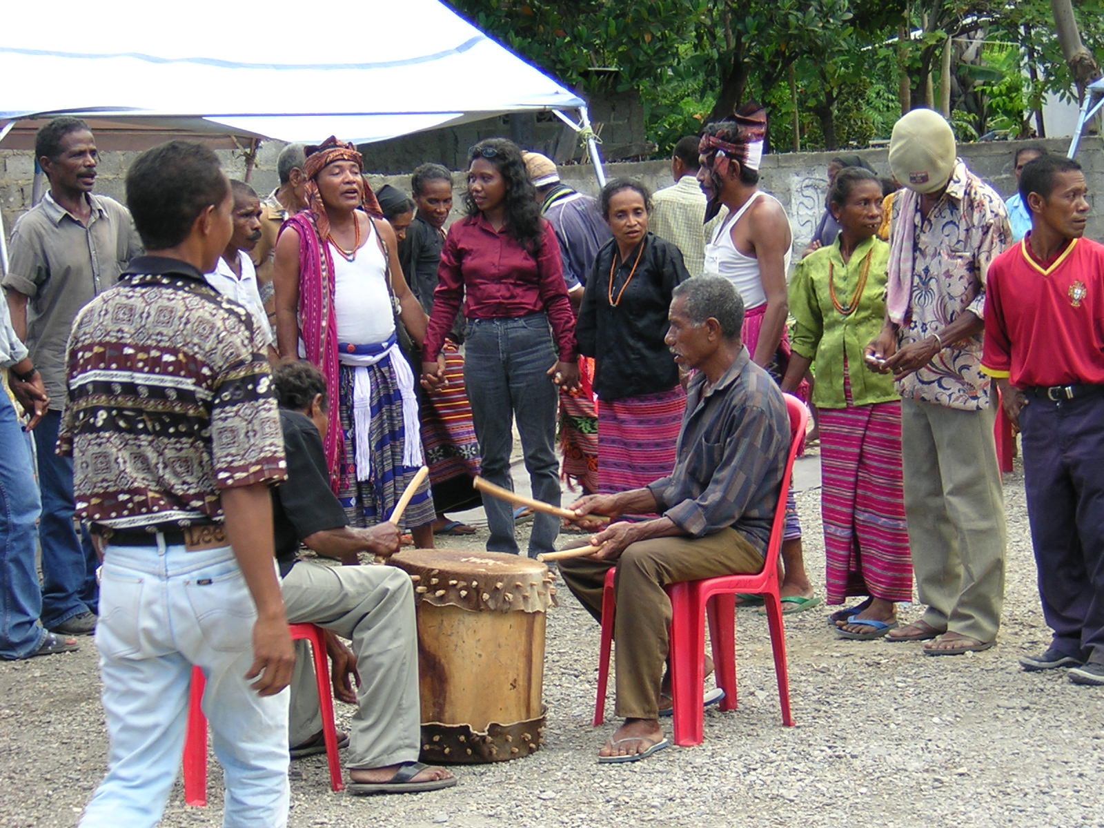 Comissão de Acolhimento, Verdade e Reconciliação harii programa ida naran ‘Prosesu Rekonsiliasaun Komunidade’ (PRK). Objetivu PRK nian atu fasilita reintegrasaun iha komunidade ba ema ne’ebé durante periodu 1999 halo krime iha kontextu violénsia politika ne’ebé la'os grave. PRK prosesu ida ne’ebé bazeia ba mekanizmu rezolusaun konflitu lokál sira tuir lisan ida-idak nian. Foto sira ne’e mai husi prosesu rekonsiliasaun komunidade ida ne’ebé hala’o iha Bebonuk, Dili. ________________ The Commission for Reception, Truth and Reconciliation (CAVR) established a program called "Community Reconciliation Process" (PRK). The objective of the program was to facilitate the community reintegration of individuals who committed non-serious crimes in the context of the political violence of the 1999 period. The PRK process is based on local conflict resolution mechanisms according to the customs of individual communities. These photos show a community reconciliation process which took place in Bebonuk, Dili.