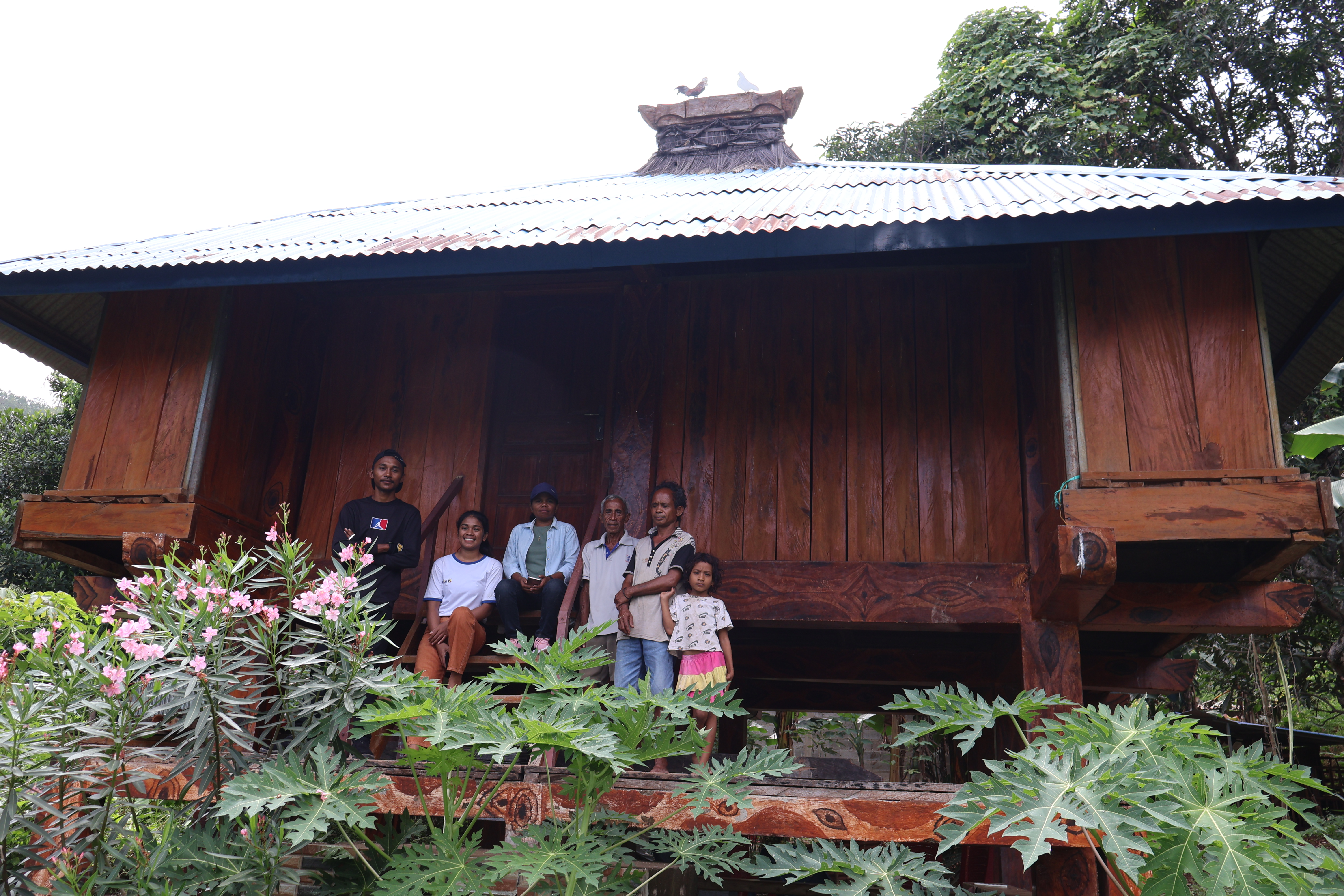 Jerasaun husi uma-lisan ida ne’e mai husi rai ida naran Lalimar iha Fatuahi ne'ebá, iha ne'ebé tuir istória dehan akontese konflitu entre maun alin, entaun avoo sira muda fali tun mai hela iha Kamea foho leten, maibé iha ne'ebá bainhira avoo sira harii tia uma lisan ne’e lakleur ahi han fali uma ne’e, entaun avoo sira muda fali mai iha Kamea, no iha tempu okupasaun Indonezia Uma lisan Maneheuk hetan fali sunu husi forsa Indonezia sira, entaun husi momentu ne’ebá ami laiha uma lisan ida ne'ebé mak bele hamahon an ba. Nu'udar Timor oan ne'ebé moris hamutuk ho kultura ami hare katak ami nia moris ne’e la la'o ho di'ak ka ami sempre hetan sorte aat tanba ami laiha Umalisan ida hodi sadere an ba, ho ida ne’e ami nia família mós ladún buras no ami nia aman katuas sira mós husik hela ami (mate). Ho ida ne’e ami konsiente katak dala ruma ami la harii fali ami nia uma lisan ne’e mak afeta ba ami nia moris. Ho nune’e ami komesa bolu malu hodi halo planu harii Uma lisan ida ne’e, atu nune’e bele halibur família sira hanesan fetosaan umane no família maun alin sira hotu, no to’o ikus mai ami harii duni uma lisan ne’e to’o remata. Uma-lisan ida ne’e nia lulik mak ai-sahe no laumer ne’e labele lori tama no ami nia ahi matan ne’e mós nunka sunu ahi, ami só bele sunu ahi iha tempu sau-batar de'it. Sasán lulik ne'ebé husi uluk ami nia avoo sira rai to’o mai agora mak hanesan; Fatuk, katana, dima, bikan. Na'in ba Uma lisan ida ne’e mak jerasaun husi Lisan Manheuok no daudauk ne’e Lia-nain ka ema ne'ebé hein Uma lisan ida ne’e mak Sr. Mario Borges de Arauju. ========================================================================= English Version: The generation of this traditional house comes from an area called Lalimar in Fatu-ahi, according to the story says that there was a family conflict so our ancestors moved to Kamea up the mountain, there they lived for some time but had to move again because their house was burned down. They moved and lived in Kamea (in the flat area), but again it was burnt down when Timor Leste was colonised by Indonesia so we no longer have a traditional house to shelter in. As Timorese who have always lived with culture and tradition from that day on our lives didn't go well and we often experienced bad luck in life because we have no traditional house to lean on. After our elders left us one by one and we began to think that maybe it was because the Maneheuk traditional house was not built that our lives were always in trouble and bad luck. For this reason, we began to gather all family members to make plans to build this traditional house so that we could gather together with families from the "fetosaan" and "Umane" families, and finally this traditional house was built to completion. It is prohibited to bring "ai-sahe" and "Laumer" into the house and the fireplace in the house is not allowed to be lit, only during ceremonies (sau batar). The sacred objects in this traditional house that our ancestors brought with them to this day and that we still keep are stones, spears, plates. The guardian of this traditional house is the Maneheuk generation and currently Mr Mario Borges de Araujo is the one who looks after this traditional house and if there are any traditional things or rituals, everything will be done by him.